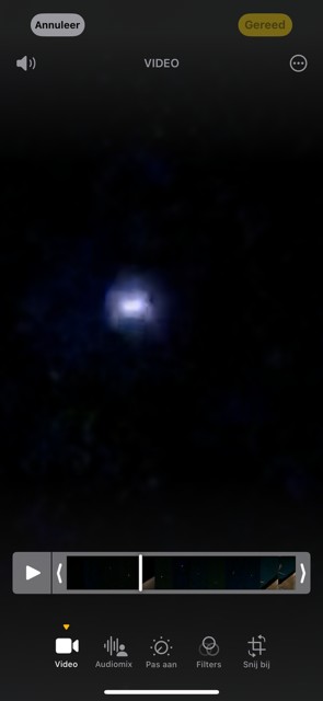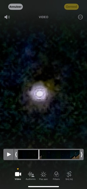 Als je inzoomt kun je duidelijk zien dat er een rond object in het helder wit is te herkennen wat op de film ook lijkt te draaien.