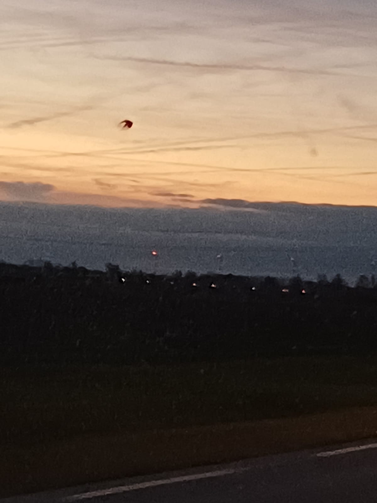 Ik ben taxi chauffeur van schoolkinderen en elke ochtend maakt een deelnemer een foto van de zonsopkomst of de wolken en we zagen ineens dit op de foto staan.. ik dacht ik upload het even