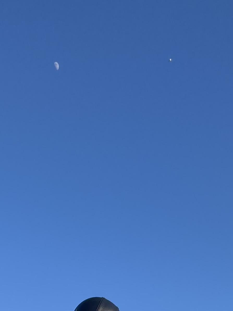 Ik heb toevallig een korte video ervan (iPhone 15 Pro Max ‘Live Photo’) omdat ik foto’s aan het maken was van mijn partner met de middag-maan. Hierbij stuur ik een gecropte foto en screenshot van het object ingezoomd.