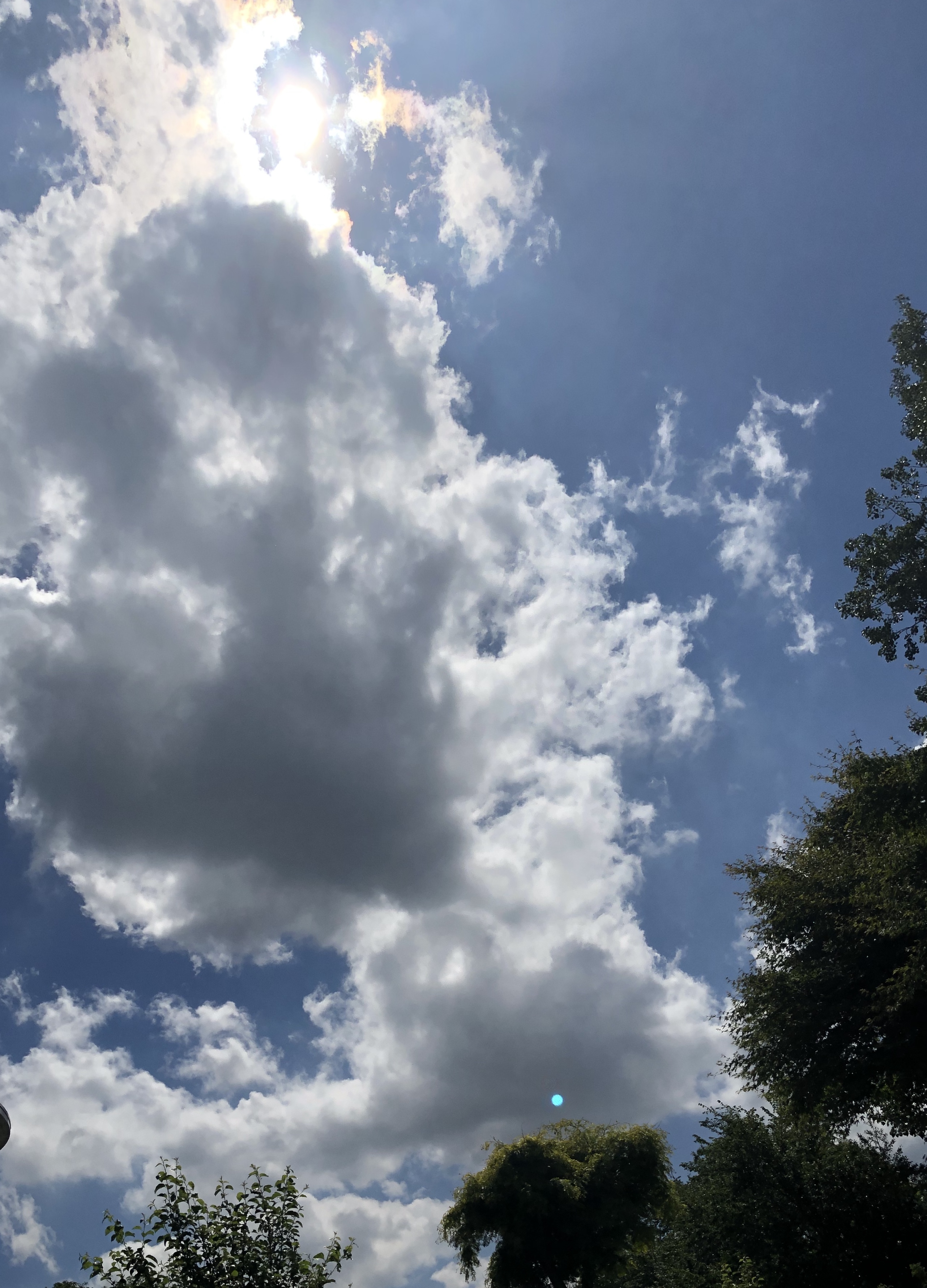 Op twee foto’s zag ik een blauwe bal. Mijn camera maakte foto’s van zon/wolk