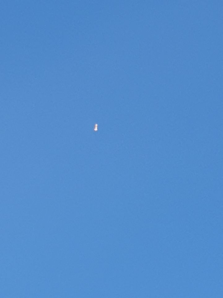 In eerste instantie dacht ik van ver af dat het een luchtballon was, maar merkte dat de snelheid die die had het niet kon zijn het was best lastig te zien door de zon die er op kaatste.