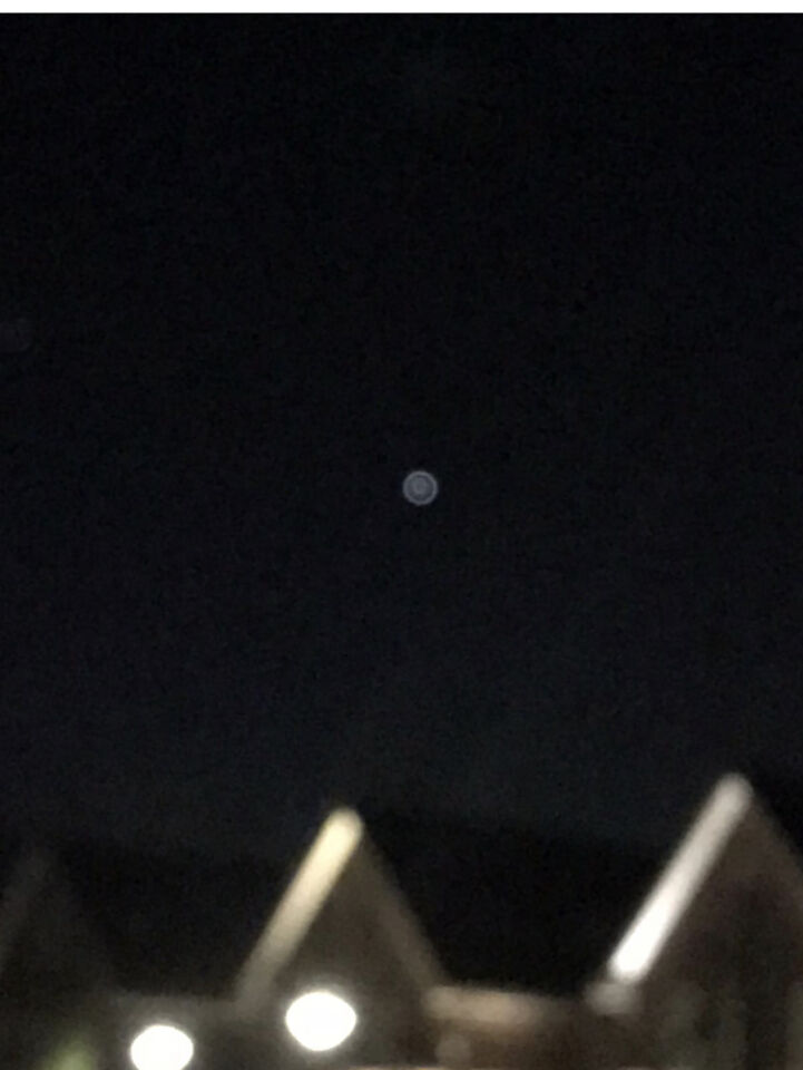 De cirkelvorm ontstaat door een lichtpunt dat uit focus wordt gefotografeerd of gefilmd. Dit is waarschijnlijk een heldere ster of planeet. Meer…