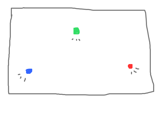 3 verschillende kleuren lichtpuntjes die heel snel gingen samen kwamen en weg wa