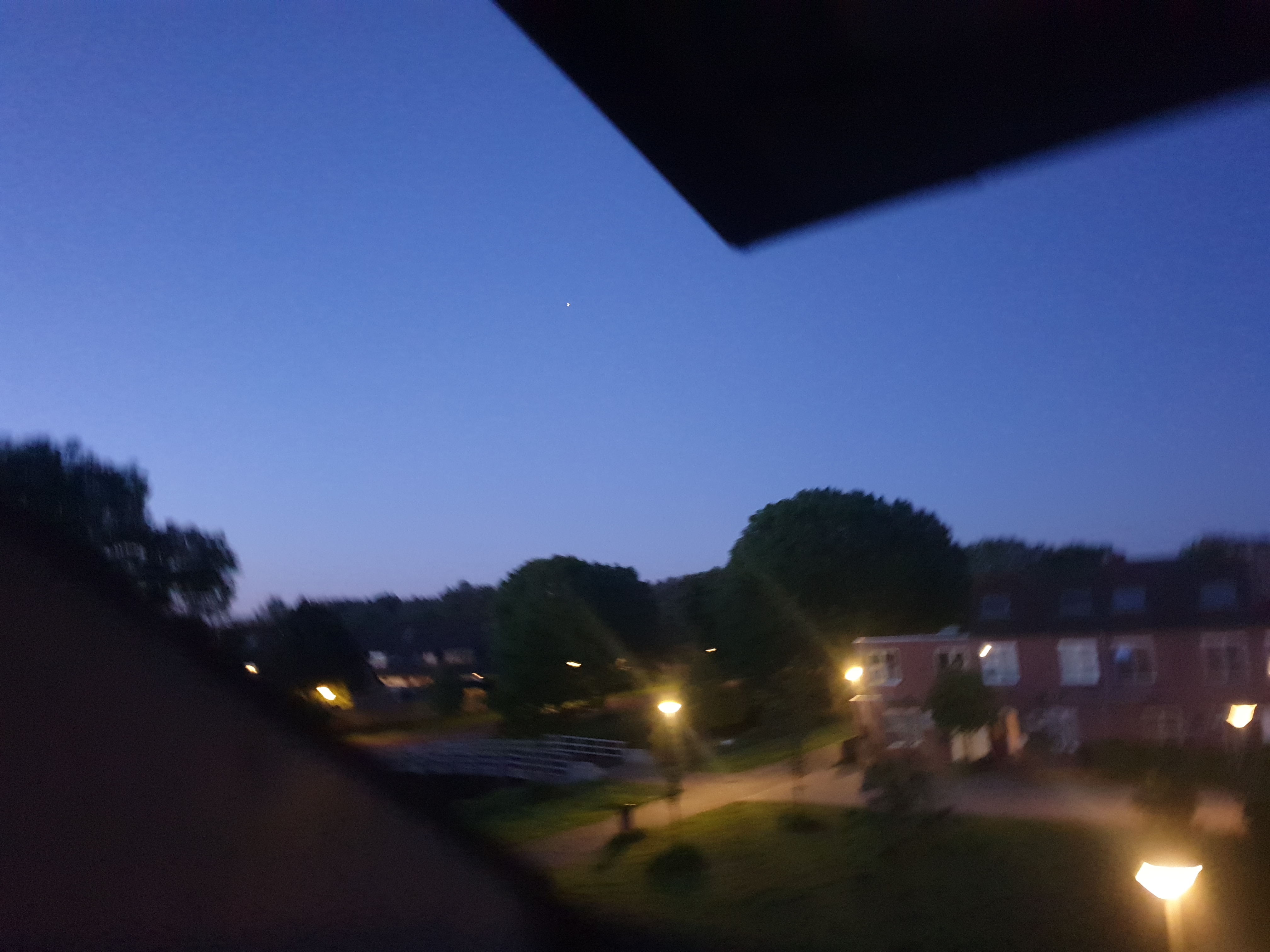 Het leek een ster heel fel maar toen ik het fotografeerde had het iedere keer een ander vorm boemerang, kegel en ook rond met donkere randen fel wit licht donkere randen