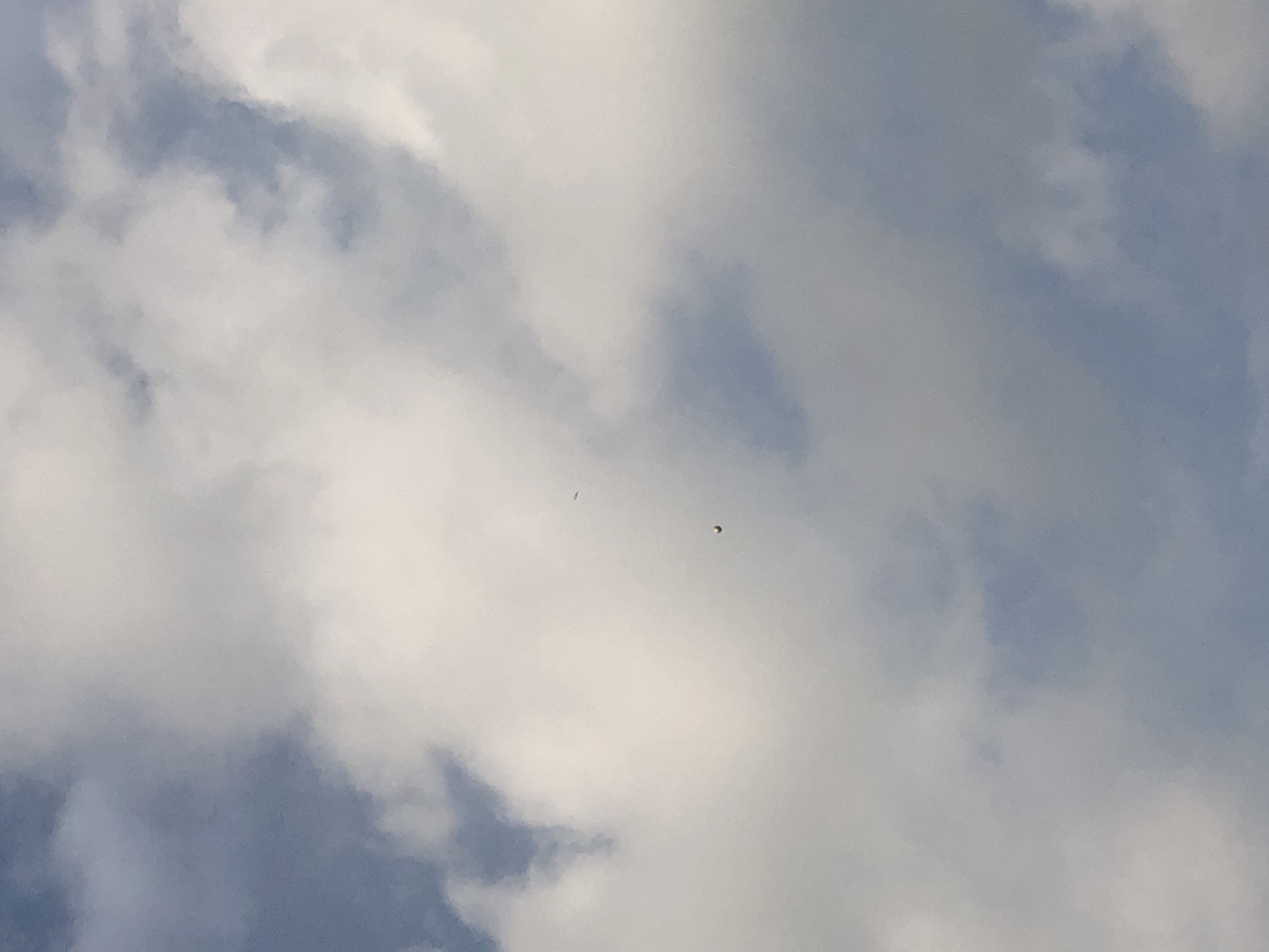 HAZERSWOUDE-DORP, ZH — Om 17.11 bewoog een goudkleurige bol zich in een rechte lijn van zuid naar noord. Het vloog geruisloos door de lucht. Op het filmpje (bovenin, ik kon m niet zo snel vinden) zie je geen vogel erbij vliegen. Op de foto’s zie je wel een vogel. De ene keer links, dan weer rechts, dan weer veraf en een keer dichterbij.