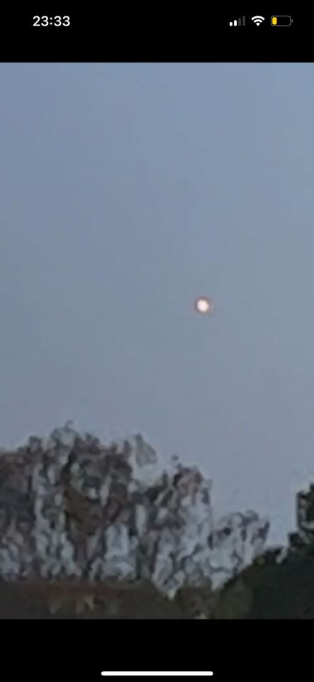 Orangje felle lichtbol werd later licht en wit en bewoog sneller