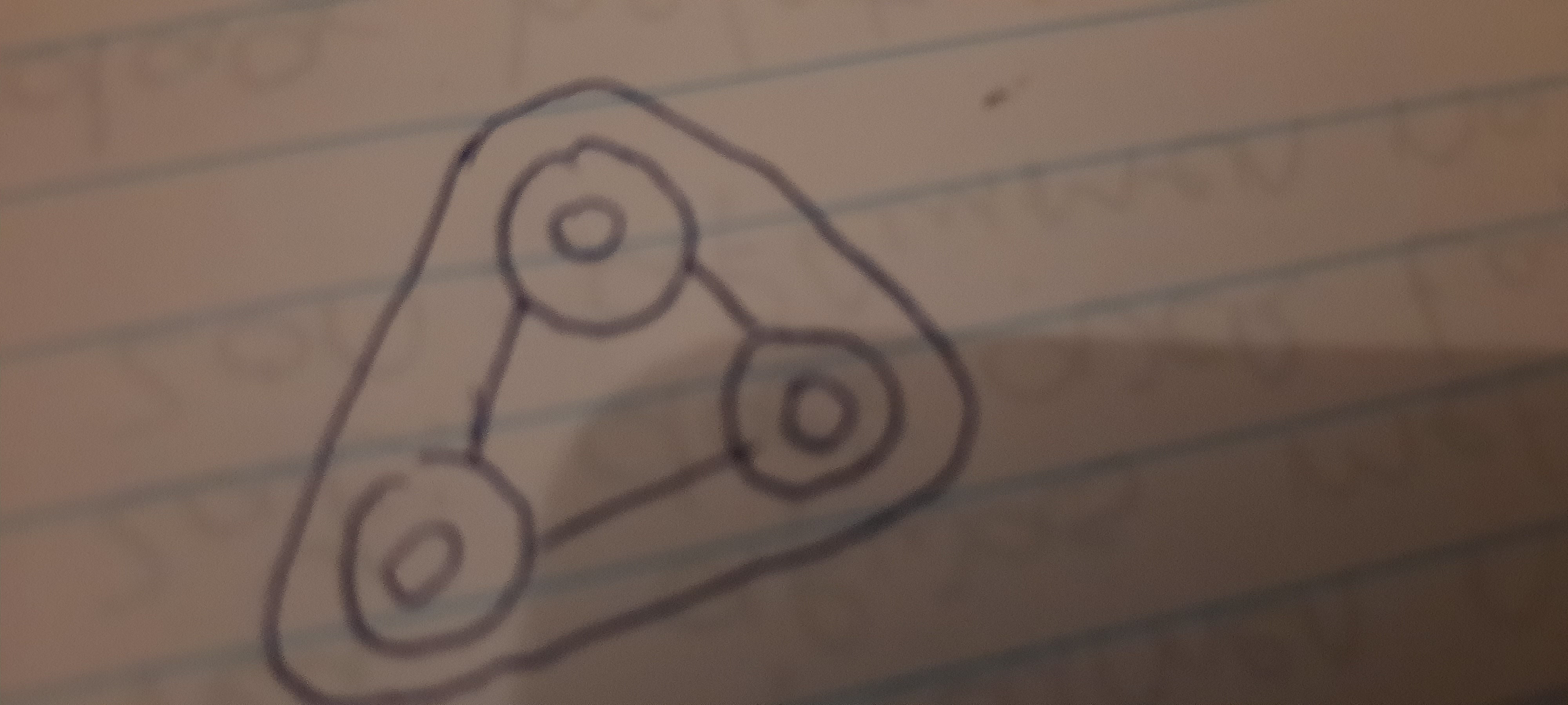 DEVENTER, OV — We ware de sterrenregen aan het kijken, en ineens vloog er een donker object zonder lampen over ons, iets hoger dan de lichtmasten van het voetbal stadion, het was ongeveer 10 meter groot/breed, we zagen duidelijk op de driehoeken de schijven zitten en de stangen ertussen. Het voertuig vloog zonder geluid en met soepele bewegingen. De foto is een tekening van wat we zagen. Het object leek zwart van kleur en de schijven waren van een wat lichtere kleur.