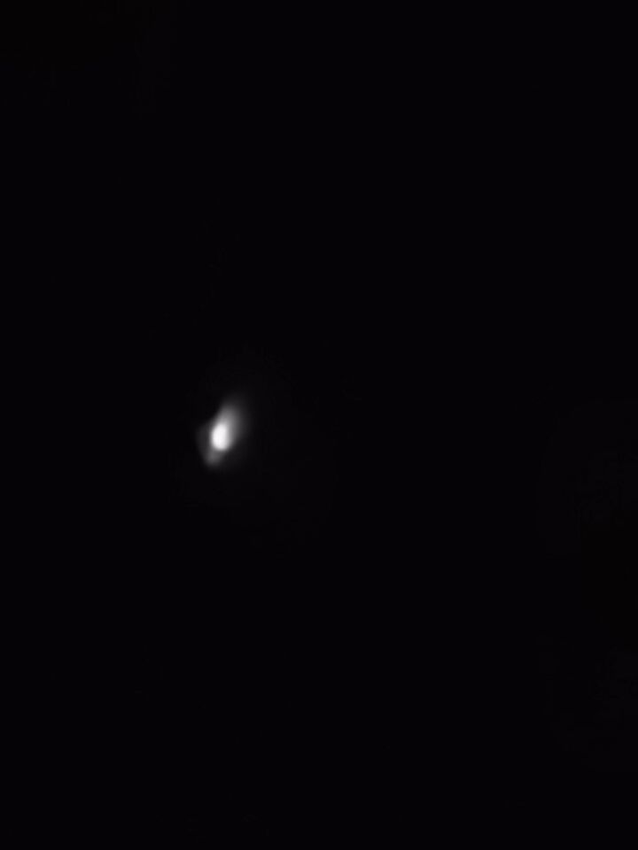 LEIDSCHENDAM, ZH — Ik dacht een ster te zien, best fel, ik zoomde in met mijn telefoon en dacht een dubbelster want ik zag twee lichten boven elkaar. Ik maakte een paar fotos. Toen ik die binnen bekeek leek het een bol met een soort band binnenin met wisselende kleuren. Ik pakte dus een andere telefoon en zoomde nog meer in en toen was het meer een rechthoekig iets met een soort straalaandrijving. Helaas kwamen er toen wolken voor en kon ik geen video maken. Het leek wel stil te hangen in de lucht.