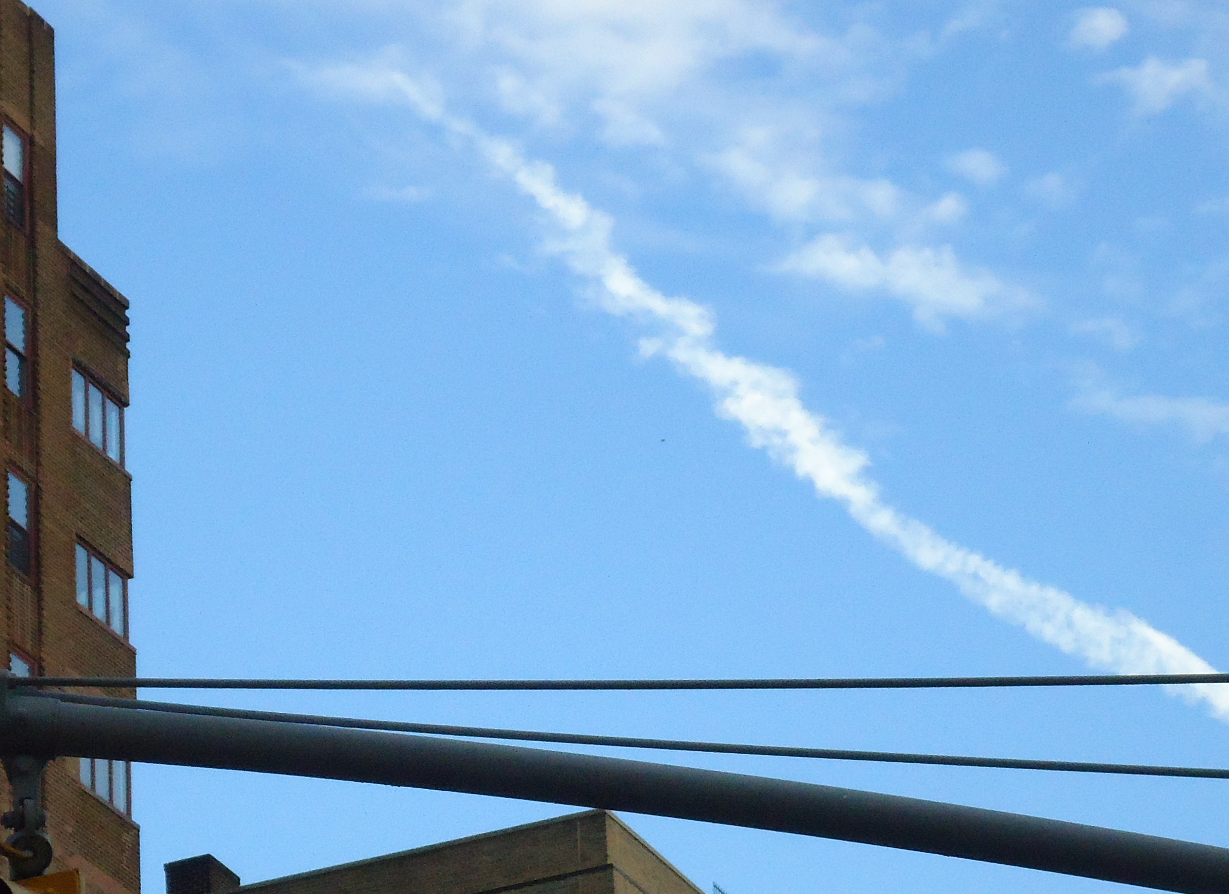 Mijn zoon was afgelopen zomer in New York waar hij een zilverkleurig object heeft waargenomen. Naar zijn zeggen bewoog het richting het zuiden om 14 uur Amerikaanse tijd. Het object was klein, hij kon niet goed waarnemen wat het was, maar het was voor hem zeker geen vliegtuig.