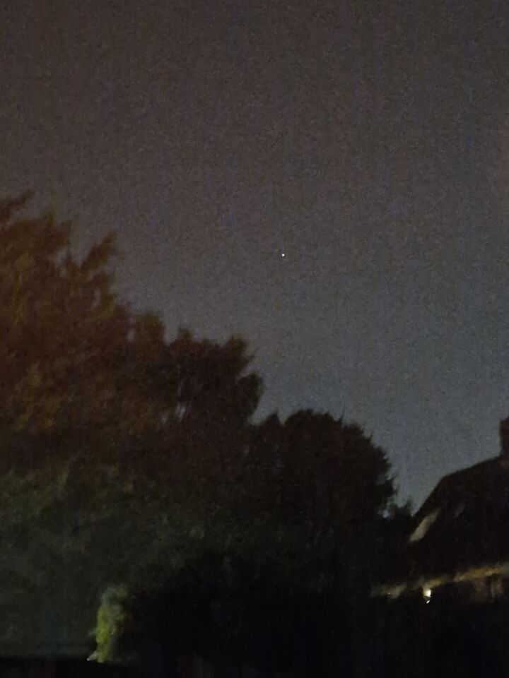 VOGELENZANG, NH — Flauwe driehoek helder verlicht waarbij vnl aan de randen lichten knipperen in wit/groen/rood en in het midden een blauw knipperend licht. Op kleine afstand hiervan waren nog 3 van deze objecten achter de wolken minder goed zichtbaar. Met een foto of blote oog zie je alleen een witte bol dat knippert met kleuren. Met de verrekijker zie je duidelijk een UAP
