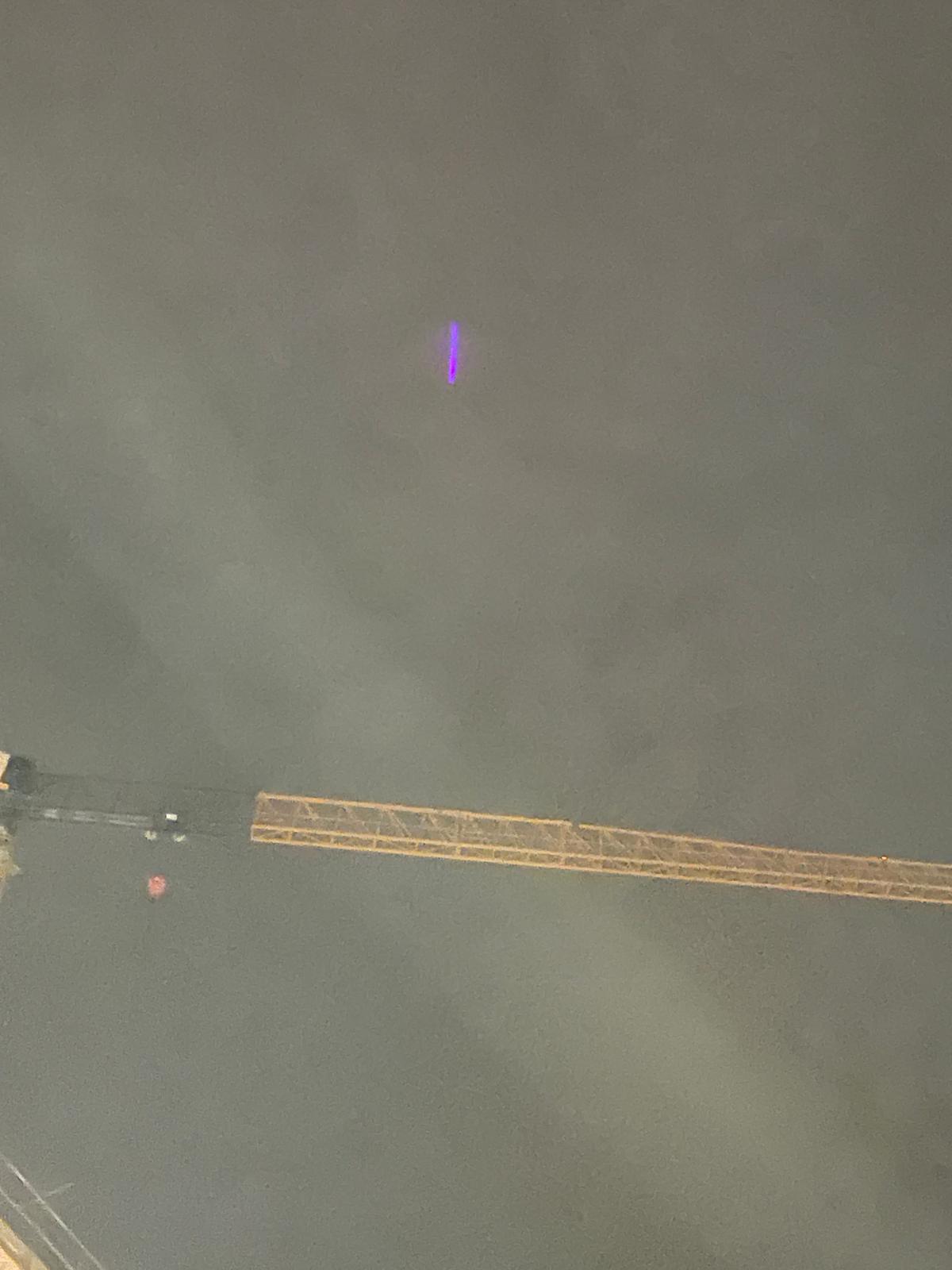 KEULEN — Er wat al de hele avond een paarse driehoek in de lucht. Soms met paarse straal naar beneden.