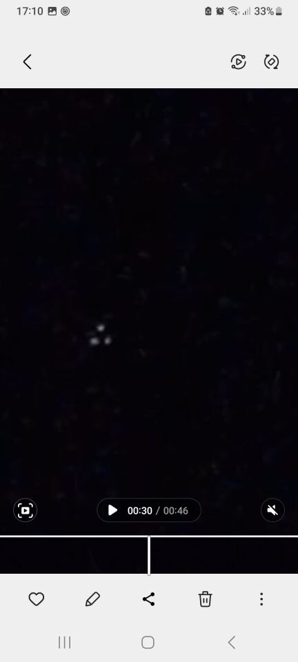 Ik weet niet goed wat ik heb gezien. Het flikkerde heen en weer. Heb het gefilmd. Maar is natuurlijk erg hoog. Heb het filmpje later diverse malen stilgezet en daar ook afbeeldingen van gemaakt. Daarin zie ik verschillende vormen en kleuren