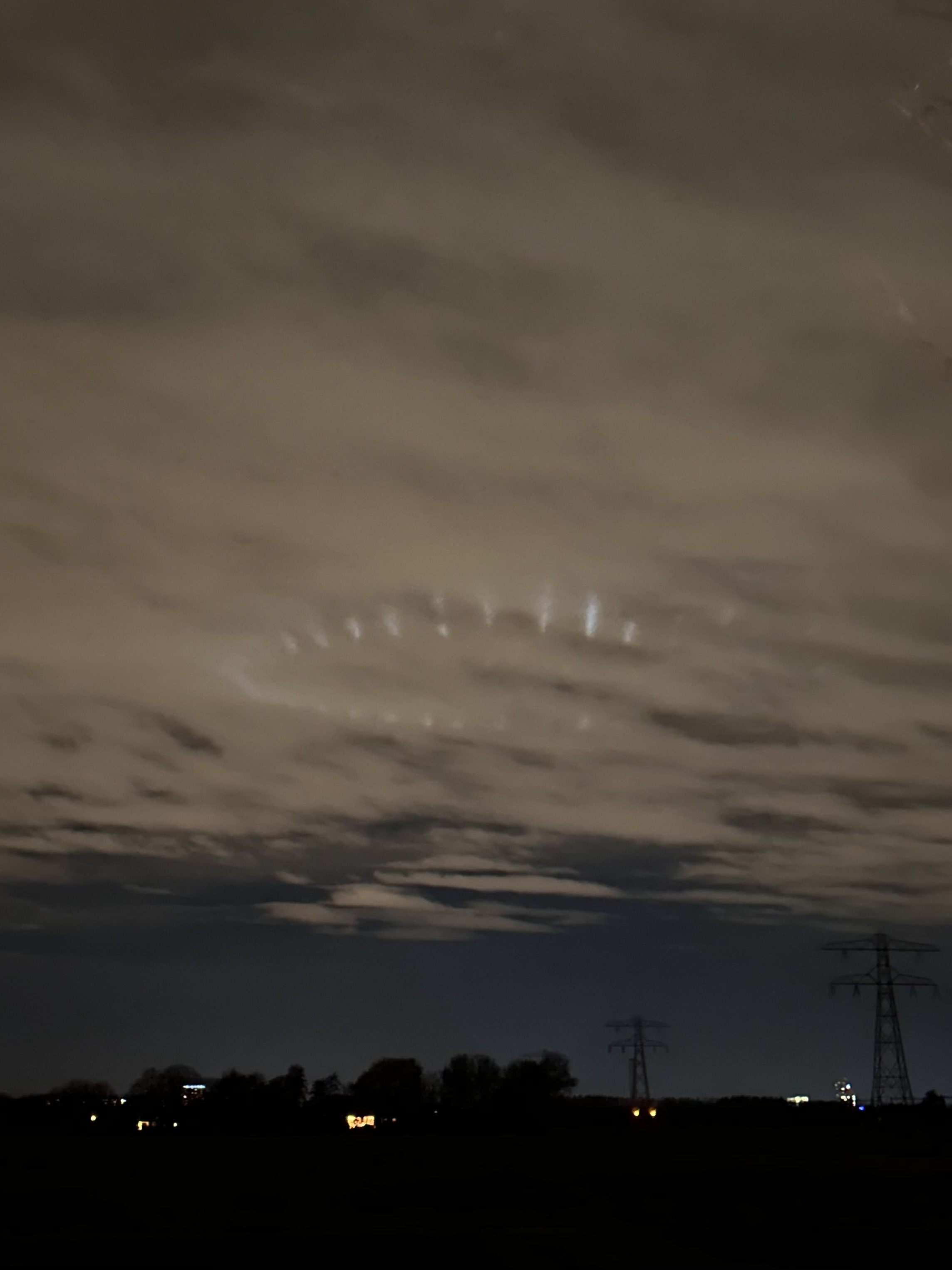 Het object bleef op zijn plek, kwam te voor schijn waneer de wolken minder werden en het was in een perfecte ronding, de lichtstralen plaatsten zich naar boven langs het “object”