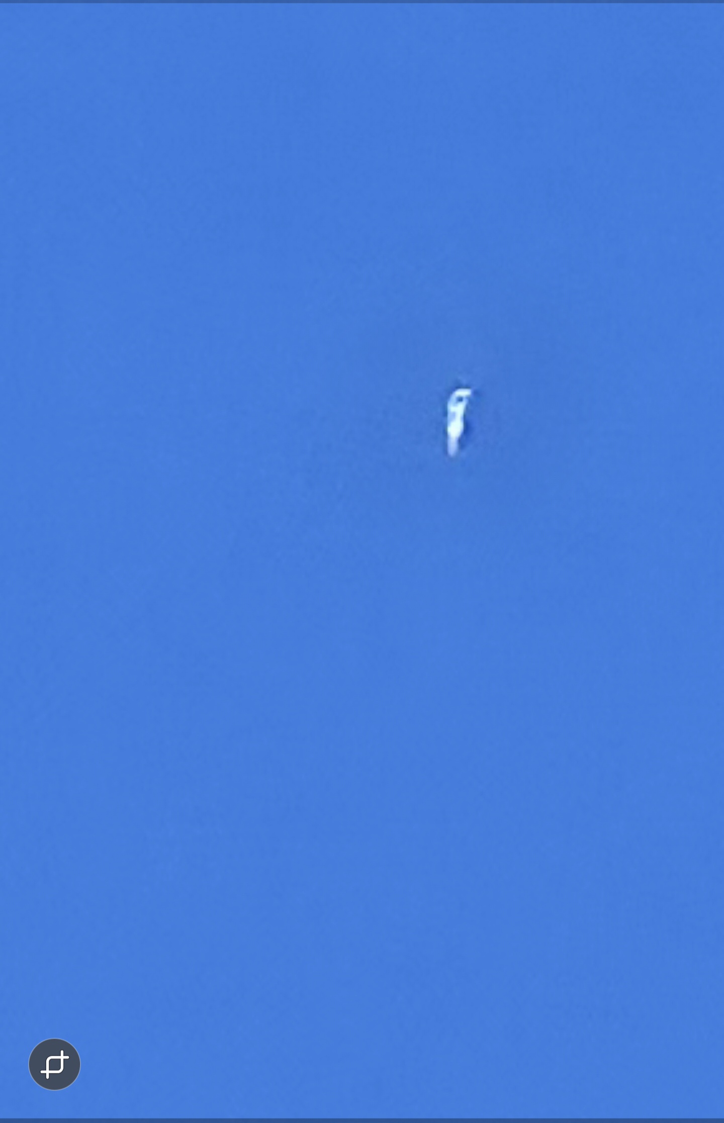 NUENEN, NB — Hoog in de lucht zag ik iets wit. Het haar 33m sigaar vorm maar dan verticaal. Het leek te blijven hangen maar bewoog zich langzaam richting het zuid oosten en ging steeds verder van mijn positie af. Ik dacht in eerste instantie aan een weerballon of iets dergelijks. Maar als ik naar de foto kijk (de geplaatste foto is een ingezoomd screenshot van de foto) zie ik er geen weerballon in terug.