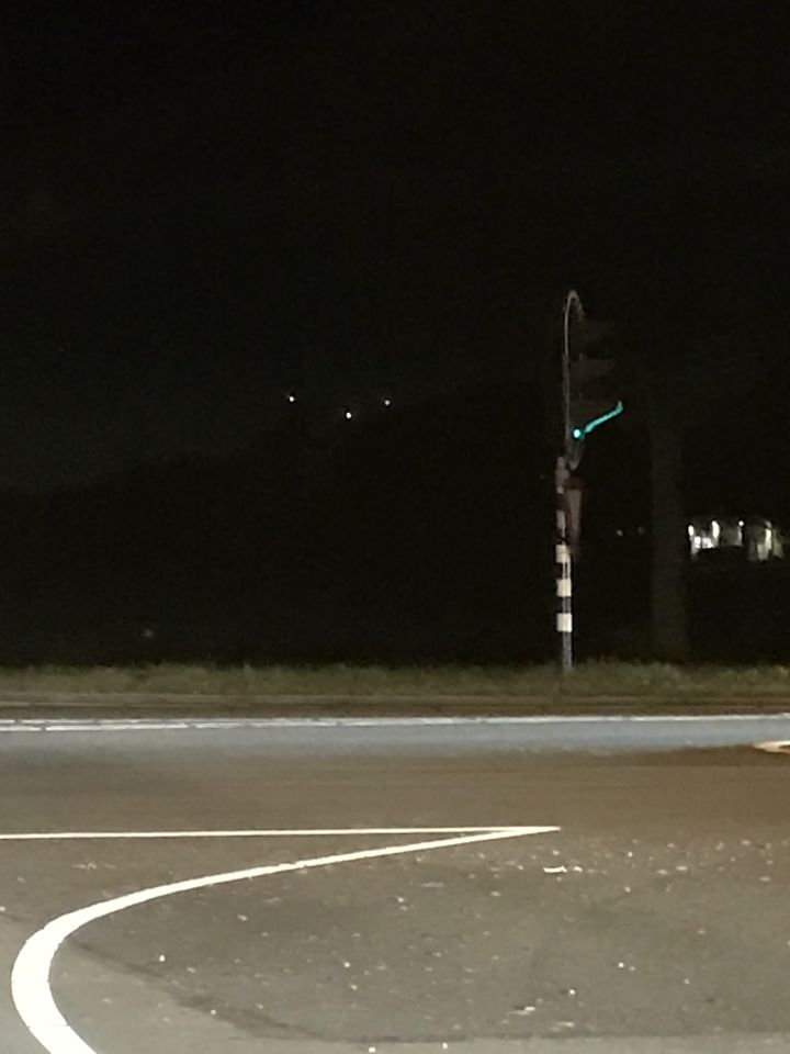 Ik reed over de rondweg in Houten toen er extreem grote lichten in een driehoekig object ter groote van minimaal 6 voetbalvelden zachtjes overvloog. Meerdere mensen stonden langs de kant van de weg te kijken wat het was. Het vloog heel laag en maakte geen geluid en het leek te reflecteren. Dit was te groot voor een menselijk object, ik twijfelde ook wat ik zag. Uiteindelijk kon ik langs de kant fotos nemen, helaas wel van wat verder weg. Op dat moment vlogen er helicopters die richting op en een straaljager die qua grote in het niet vallen bij het object. De hoogte schat ik op ongeveer 300 meter ( iedergeval niet hoger) http://imgur.com/a/PyIQ8