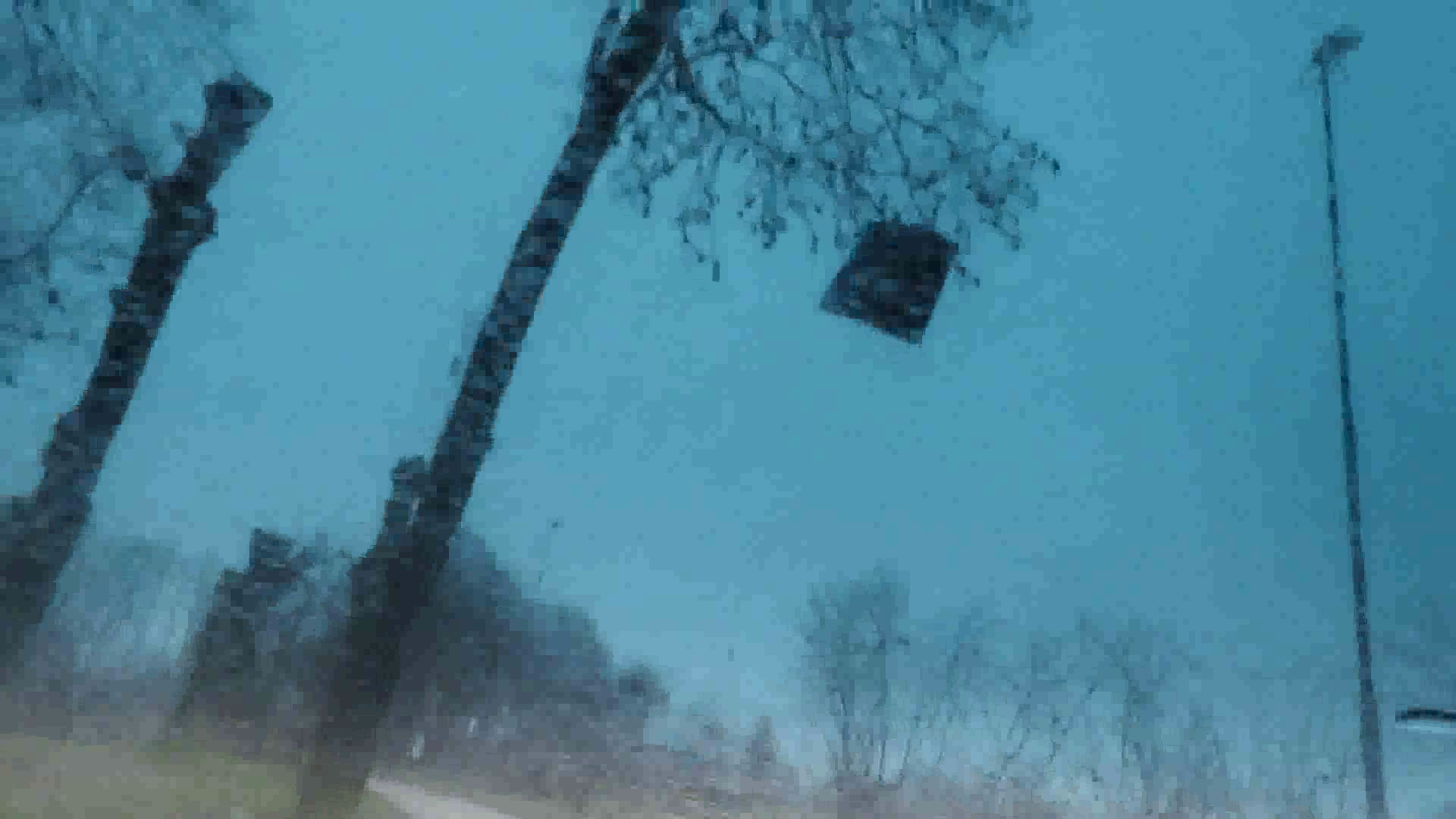 De fotos zijn niet scherp omdat het op 21 december de donkerste dag van het jaar is (het was tegen vijven), het was bewolkt en het regende plus ik zat achter een raam. Veel pech dus. Het blauw wat je ziet op de fotos is de bovenkant van de voorruit (UV protectie voor in de zomer).