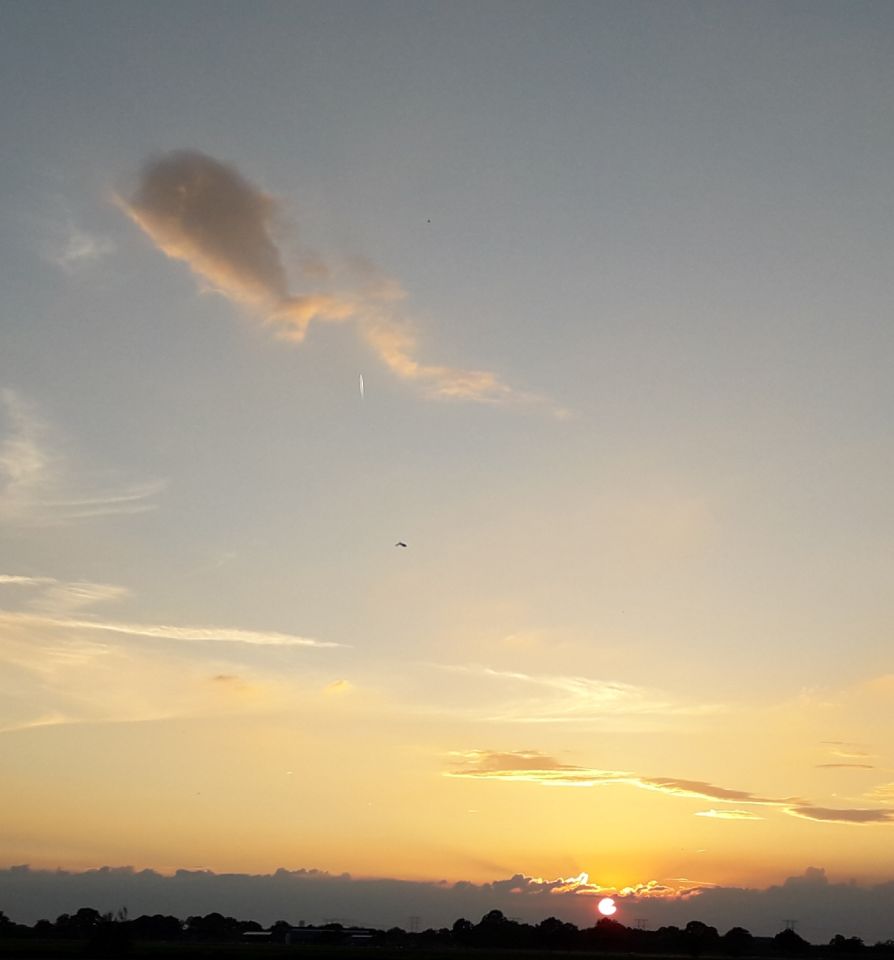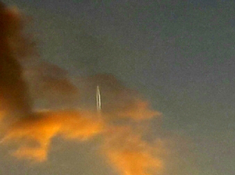 Op verschillende foto's zichtbaar, zag het pas daarna. Aan de wolken te zien beweegt het omhoog. Geen idee wat het is. Het lijken twee verbonden lijnen te zijn met ruimte er tussen. Het ziet er bijzonder uit in een opwaartse lijn. Mijn partner die heel nuchter is vond het net een raket.