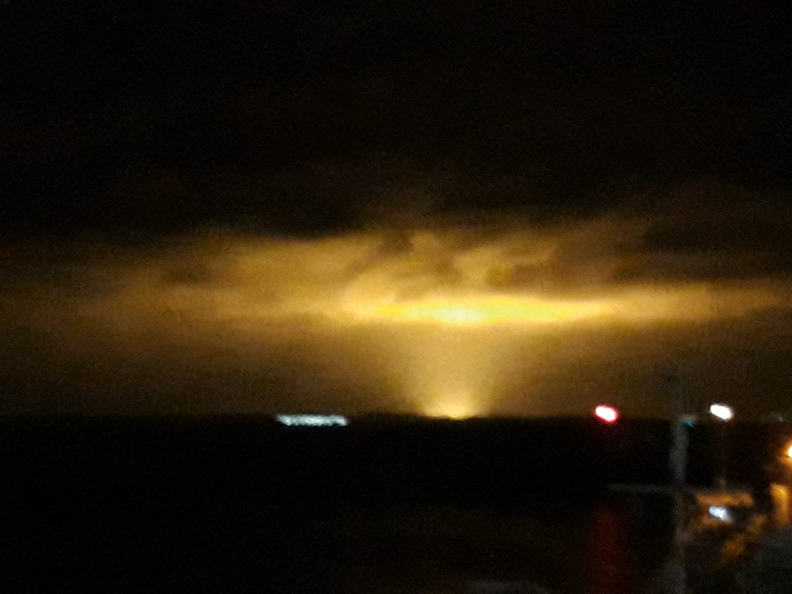 Stilstaand gele lucht midden in de nacht